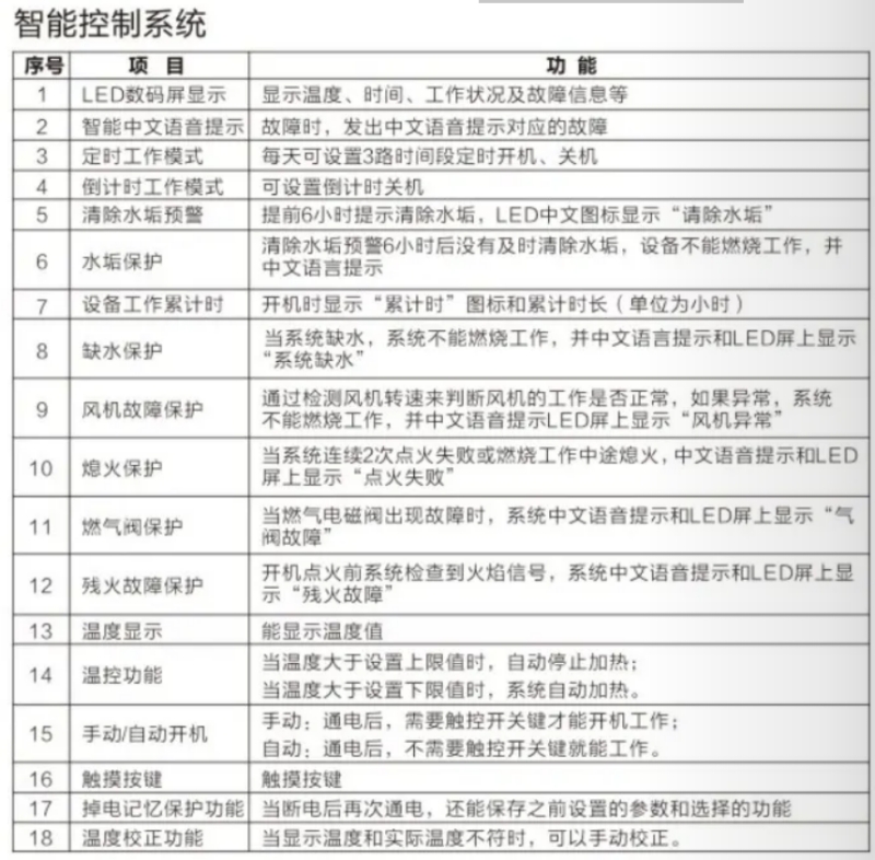 2:智能控制,性能穩(wěn)定,控制系統(tǒng)配有獨立電箱,電子脈沖點火,五針一體式獨立高壓點火器,風機自帶故障檢測功能,控制器全密封,杜絕鼠蟲困擾,防潮防水耐高溫,冷水90秒超快出蒸汽,熱水5秒出蒸汽。