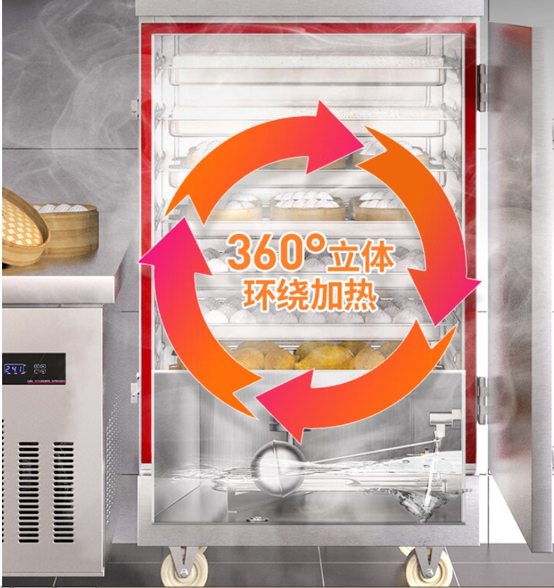 1、效節(jié)能(熱能利用率高達(dá)95%以上,對(duì)比傳統(tǒng)蒸柜節(jié)能率高達(dá)50%以上)