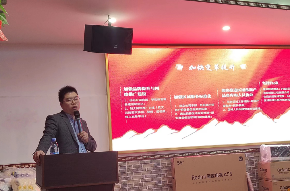 隨后,銷售部總監(jiān)巨川平發(fā)表了演講。對去年公司的整體銷售數(shù)據(jù)進行匯報,在過去一年里新增客戶單位1600家,新增300%老客戶業(yè)績,組織籌辦了3次展會。并統(tǒng)一了市場開發(fā)策略,他強調(diào)了銷售工作的重要性和挑戰(zhàn)性,并表示將在新的一年里繼續(xù)挑戰(zhàn)更高的業(yè)績目標,加強團隊建設(shè),提高員工素質(zhì)和專業(yè)技能,以更好地服務(wù)客戶,提升公司品牌形象和市場競爭力。